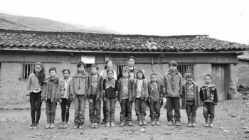 山区贫困孩子和他们生活的大山。