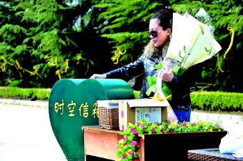 4月5日清明节,日照千秋苑通过开展“时空信箱“主题活动,以“鲜花、黄丝带、心愿卡”为三大文明祭扫元素,引导市民文明祭祀、生态扫墓。据了解,通过近几年的文明祭扫倡导,日照千秋苑公墓的文明祭扫率已经达到9成。 本报记者 刘涛 摄