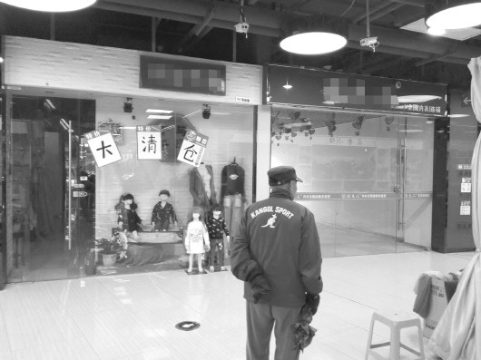 一楼一位业主指着一处空铺位说:“这间沿街铺子是我一个朋友租的,年前开业准备甩卖一批床品,没想到干了三个月赔了四五万,就撤走不干了。”她又指着另外一个空铺子说,“那个铺子是两个大学生合伙干的,年后才开业,干了两个月就不干了。这几天天气不好,来逛商场的人也很少,我隔壁卖服装的这两天都没来开门。”