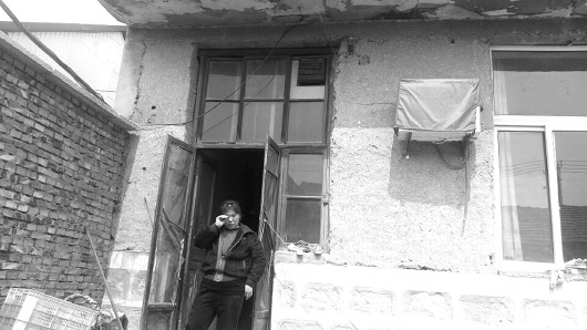 无棣人刘荣峰的妻子站在房门口。她家本来就十分困难,丈夫又被烧伤,光医药费就花了20万元,特困基金为她家解了燃眉之急。