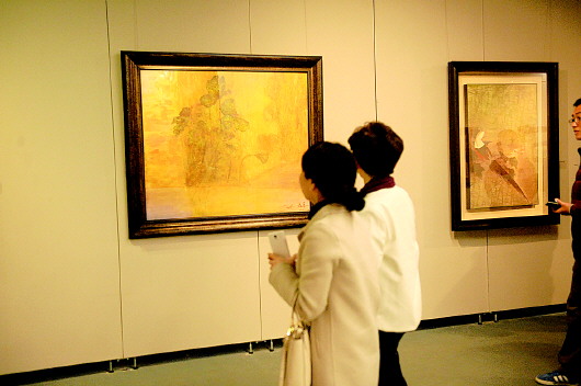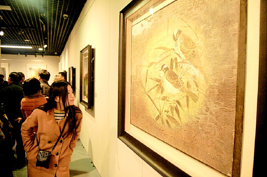 这种创新并非偶然。据介绍,上世纪90年代中期,当时杜华应法国文化部邀请,前往法国艾克斯国家艺术学院作高级访问学者。在此三年间,她开始接触并热爱上丹培拉这种绘画技法。回国后,在央美院作高级访问学者期间,又逐渐掌握了丹培拉技法的精髓。丹培拉这种材料的视觉效果典雅而高贵,与中国传统绘画的艺术特质不谋而合。中国的传统花鸟画以造型生动、色彩古朴典雅的独特魅力著称于世,但由于年代久远会使之灰暗,而丹培拉表现出的色泽,有珍珠或绸缎的美感,并且在材质上易于保存久远,弥补了传统中国画的不足。“何不借助西方丹培拉色彩,来表现中国画传统内涵呢?”杜华一方面钻研工笔、水墨,一方面也沉思于丹培拉技法与中国画结合的探索中。呈现在画展上的用丹培拉色彩绘制的具有强烈宋代花鸟画气息的画作,中西合璧,具有了独特的只属于她自己的鲜明特色。前来观展的书画名家杨文仁表示,作品大气,显示了传统中国绘画的功力,也显示出作者高远的眼界和创新的勇气。油画家、山东艺术学院副院长王力克表示,看杜华的画作,扑面而来的是自然的轻松的气息,像涓涓溪流穿过心田,真切感受到了一种与审美心律合拍的温馨共振。