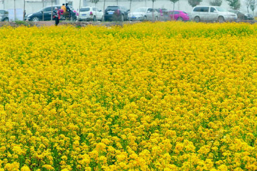 清明小长假,济南周边油菜花开得好,吸引了大量自驾游的游客。 本报记者 乔显佳 摄