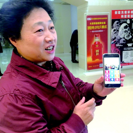 济南市人大代表卓长立向记者展示阳光大姐服务APP。 本报记者 喻雯 摄