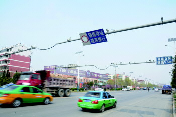 在城区南部105国道上的道路监控限速30公里的标志被涂掉。 本报记者 马志勇 摄
