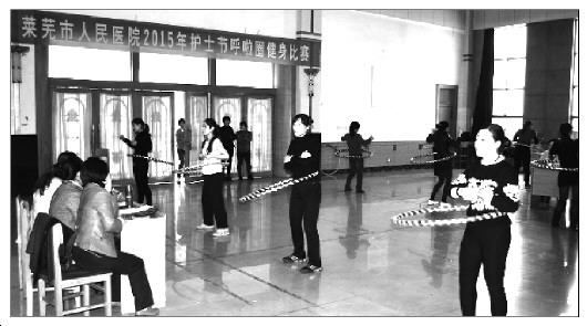 本报4月13日讯(记者 于鹏飞 通讯员 常永亮 马军 徐雯雯) 近日,莱芜市人民医院在俱乐部举办了“2015年庆祝护士节呼啦圈健身比赛”。记者获悉,自活动开展以来,全院护理人员积极报名参加,共有37个科室参加了比赛,参赛人员达到了150余人。