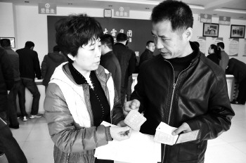 工作人员将绿标发放到车主手中(资料图)。本报记者 李岩松 摄
