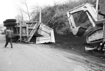 14日凌晨5时许,一辆莱州籍重型厢式半挂车载着矿粉行驶至张栖线32K+400米处,因超限运输,驾驶员对路况不熟,加上下坡转弯,车速又过快,重心不稳,导致刹车失灵,车辆侧翻,货车上装载的矿粉撒得满路都是,整个车厢面目全非,所幸车上的驾驶员没有大碍。