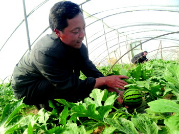 泰安市岱岳区良庄镇素以瓜菜种植闻名,该镇薛庄村村支书薛其闯说,该村从1997年开始,基本上所有的土地都种成了西瓜,今年的西瓜种植面积达到了500亩。“五一期间,西瓜刚熟的时候,价格最贵,今年瓜还没下来,价高价低还不好说。”薛其闯说。