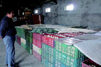 面对眼前的两万多斤鸡蛋,王宏只能低价处理。 本报记者 刘光斌 摄