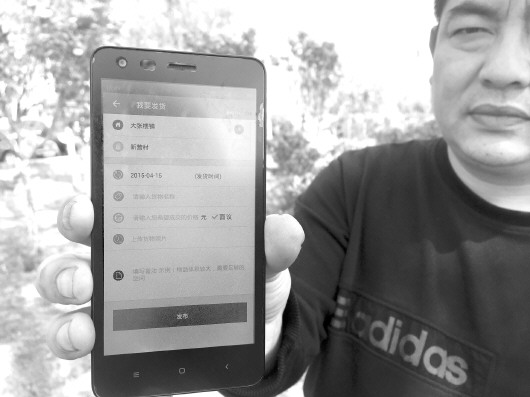 记者打开这个手机客户端,并以货主的身份完成注册,进入“我要发货”的界面,在发货地址一栏输入大张楼镇之后,由该镇转到各个村的地址全部显示在屏幕上,然后再输入发货时间、货物名称等信息,发布后就有专人负责收送快递,十分方便。