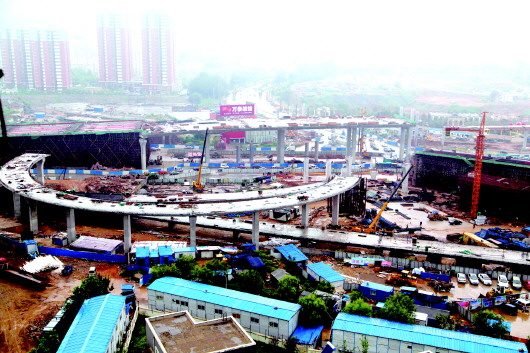 英雄山立交枢纽雏形初现,二环南快速路预计年底通车。 本报记者 王媛 摄