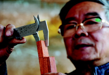 与木头打了40年交道,在简易的工作间里一坐就是一整天,61岁的孔凡礼戴着一副老花镜,满是老茧的手拿着木料时仍然十分稳健。小到马扎,大到桌椅,老孔都做,但对木料却十分挑剔,只用檀木、红木、花梨木等上等木料,利润只是一方面,老孔更多得是喜欢那种朴实的木料在手中变成华丽家具的成就感。