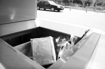 4月16日,在东方红路高地世纪城公交站点上的两处爱心零钱盒全部被清除,被扔在了附近的垃圾箱内。此处设立的两个零钱盒曾在3月26日被媒体广泛关注,引起市民的一片点赞。 本报记者 马志勇 摄