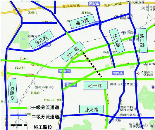 纬十二路修路期间绕行方案。 济南交警提供