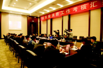 考核组听取消防工作情况汇报。