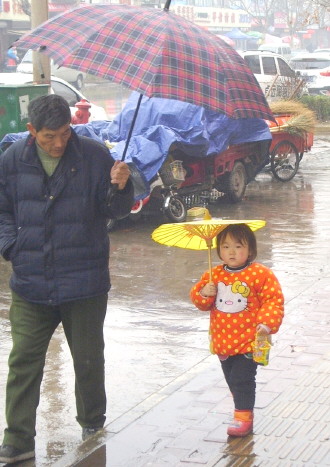 时间:2015年3月18日 自述:雨中,家长倾斜大伞为孩子再加一层防护。 点评:满满的都是爱。