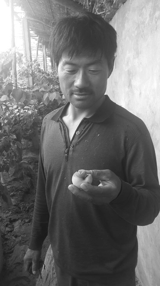 涧北村村委会主任高跃介绍,全村共有近40个大棚,都种满杏树,主要是“金太阳”和“凯特”两个品种,每个大棚杏产量大约4000斤,全村能产杏约15万斤,但至今几乎都没卖出去。一个大棚的成本大概在6000—7000元,村民最大的希望就是杏别烂在地里。为避免更多的杏烂在地里,卖价已经降了很多,小的4元/斤,个头大的7元/斤,往年可以卖到13-14元/斤。目前涧北村杏农只是待在大棚里等着收购商前来收购。