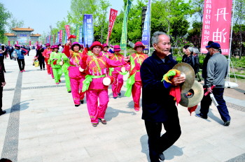 腰鼓队“ ”进牡丹园