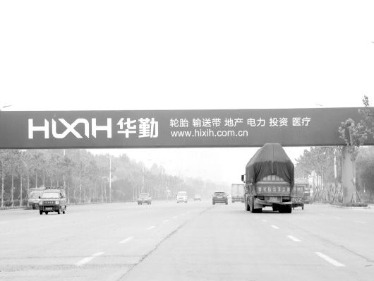 华勤在济宁市区的广告宣传牌。其企业标识的每一个细节,都是一点点从外企身上学到的。近两年,华勤涉足了医疗、地产等领域,成立了投资控股公司,但实体经济依然是华勤最倚重的。 马辉 摄