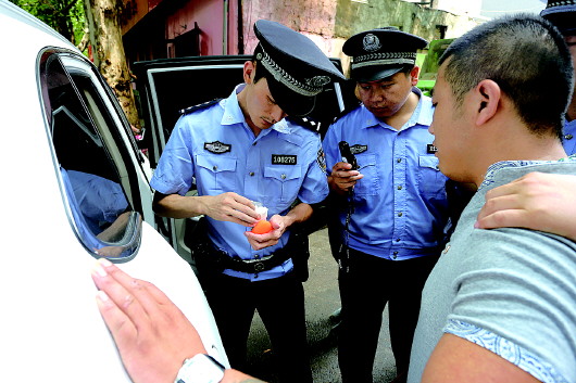 去年7月,警方在一辆车上搜出吸毒工具和疑似毒品。(资料片)
