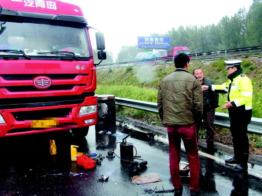 长清交警在高速路段疏导交通。  本报记者 张帅 摄