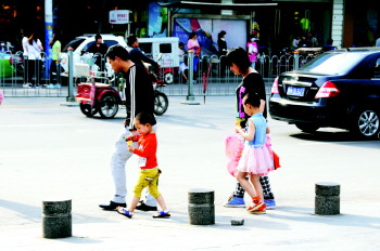 4月23日,德州城区最高气温近30℃,街上不少市民穿起夏装,犹如一夜入夏。 本报记者 马志勇 摄