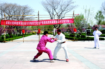 近日,为庆祝太祖拳列入新泰非物质文化遗产,翟镇举办“第四届群英武术交流大会”。来自全市百余名武术爱好者如约喷泉广场,展示了太祖拳、太极拳、太极剑、九节鞭、木兰刀、太极功夫扇等武术精髓。