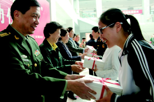 23日是第20个“世界读书日”,由滨州市委、市政府主办,滨州市委宣传部承办“学习城市·悦读滨州”启动仪式在市民活动中心举办,标志着滨州市“学习城市·悦读滨州”活动正式拉开序幕。活动旨在动员全市广大干部群众积极参与全民阅读,倡导人们多读书、读好书、善读书。图为启动仪式现场,领导向各代表赠书。 本报记者 王晓霜 摄