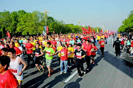 上午7时30分,随着发令枪一齐鸣响,比赛正式开始。3万余名选手如潮水般迅速涌进跑道。跑道上多色涌动,激情飞扬,点燃了整座城市的热情。