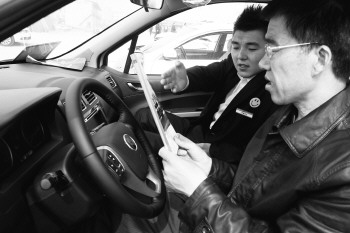 营销人员向前来购车的市民讲解车内部结构。