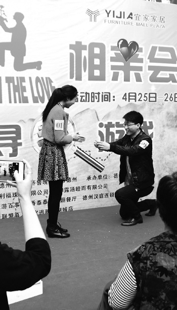 相亲会现场的浪漫求婚,引来满满祝福。本报记者 马志勇 摄