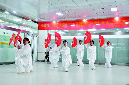 4月15日上午,在历下区老龄办组织的全市老年文化艺术广场启动仪式选拔比赛中,名士豪庭社区舞蹈队和太极队分别表演了舞蹈《祖国,您好》和《中国功夫扇》,名士豪庭第二社区舞蹈队表演了舞蹈《鸿雁》,展现了当代老年人的活力和风采,赢得了阵阵掌声。左图为舞蹈《鸿雁》,右图为《中国功夫扇》。 通讯员 钱海英 李怡冰 摄