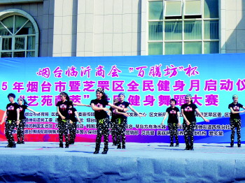 本报4月27日讯(记者 王永军 实习生 艾婷玉) 26日上午,作为2015年芝罘区全民健身月启动仪式,烟台临沂商会“百膳坊”杯艺苑献萃社区健身舞蹈大赛在西炮台社区文化广场拉开帷幕,来自芝罘区各街道办的十几支队伍给市民呈现了一场精彩的视觉盛宴。