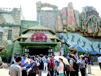 在“女娲传奇”项目区,坐上多自由度动感游览车,游客们可在女娲的带领下一路追寻七彩石并和“两个恶魔”展开恶战,从深不见底的悬崖到黑黝黝的山洞,在女娲的保护下,展开一次惊心动魄的冒险之旅。