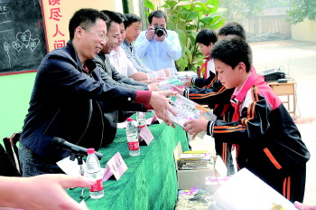 ◤本报梦想书屋捐赠仪式现场。(资料图) 本报记者 邓兴宇 摄