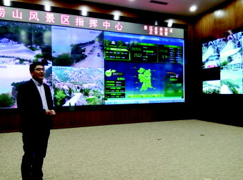 崂山景区指挥中心根据监控录像及数据随时调度景区车辆及人员。