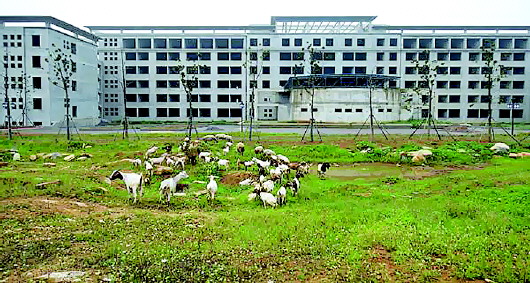 安徽萧县闲置办公楼成了放羊场。(资料片)