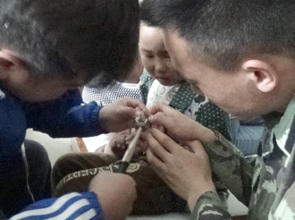 26日中午11点左右,薛城一儿童手指被螺丝帽卡住,无奈之下只好被家人带到了薛城消防大队求助。消防官兵随后使用专门破拆工具对螺丝帽进行了缓慢破坏,终于将孩子的手指取了出来。 本报通讯员 贾文 本报记者 袁鹏 摄影报道