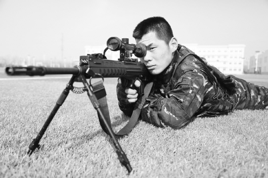 ▲每天坚持近10小时的超强度据枪瞄准训练。