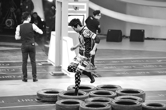 陆毅王岳伦这对难兄难弟迎来了史上最具挑战性的“高跟鞋追逐战”。李湘在博弈区直言:“特别想看陆毅穿上高跟鞋追王岳伦。”无奈之下两位丈夫只得穿上妻子亲自给换的恨天高,长腿陆毅很快适应了高跟鞋,兴奋地走起猫步,摇身变“性感女郎”;相比之下王岳伦就没有那么幸运了,他踩着11厘米高的鞋子走路摇摇晃晃,情急之下只得以上跳下蹲的方式来快速适应。此次挑战中,第一次穿着高跟鞋的陆毅王岳伦不仅要上演追逐大战,其间还要通过包括踩台阶、跨栏、答题过门在内的几项任务。王岳伦坦言,有了这次经历,他更心疼为做节目长久穿高跟鞋的李湘了。陆毅王岳伦为爱敢于尝试拼力追逐,赢得全场的热烈掌声。