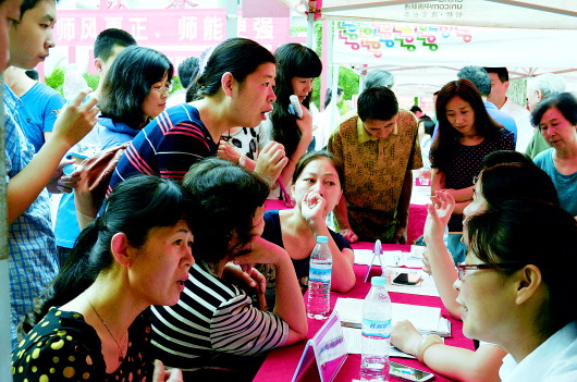 ▲学生和家长在咨询中考招生政策。(资料片)