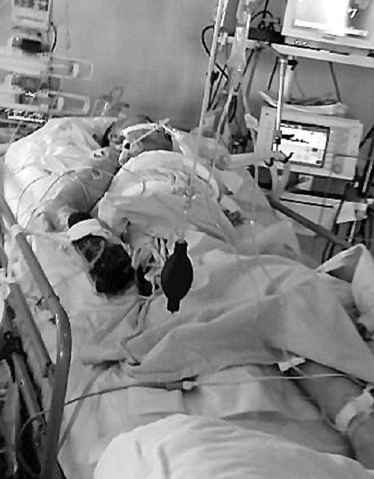 小陈躺在医院的ICU病房里(家属供图)