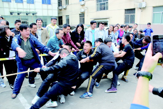 为丰富、活跃区法院干警的精神文化生活,增强干警体质,培养团队精神,提高干警的凝聚力和向心力,滨城区人民法院于5月9日举办了第九届春季运动会。本次运动会共设有拔河、托球接力跑、瞎子敲锣、绑腿跑、扑克够级5个团体项目,踢毽子、自行车慢骑、乒乓球、中国象棋4个个人项目,共有23个代表队,120余名干警参加了比赛。