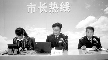 ◤菏泽市食品药品监督管理局局长郝丕进接听市长热线。