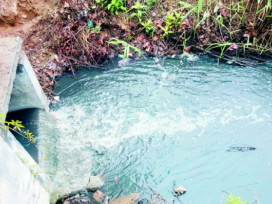 ◥管口处排放的污水流入商中河。