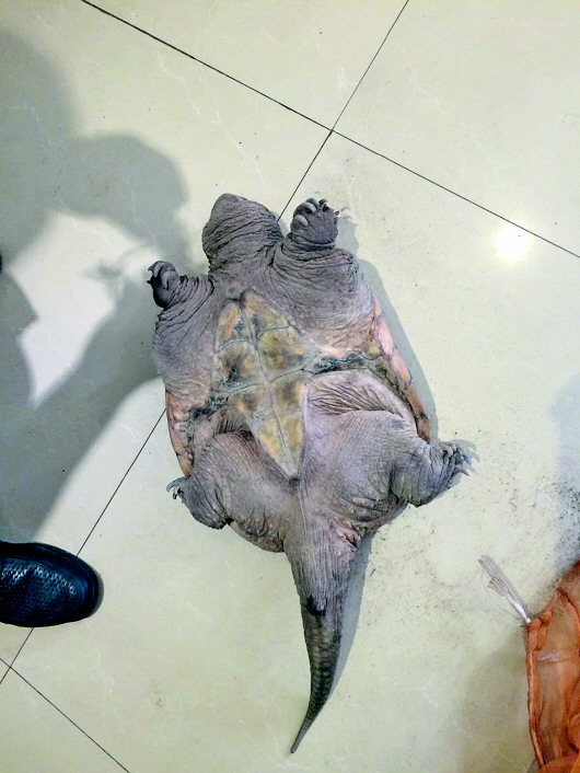 姬女士看到那只“乌龟”大概有半米多长,懒懒地趴在地上。“卖家说是从黄河里捞上来的,卖给男士要2000元,卖给女士的话可以1000元。我还说了卖家几句,这好歹也是一条生命,怎么能干这事。”