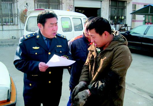 交管所工作人员上门服务维修企业。