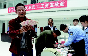 14日,36名从济南来淄博的务工者全部领到了血汗钱。他们去年6月在周村打工,但到了工程完工时约定好的工钱没到手,包工头却消失了踪影。周村公安分局经多方调查,将逃到海南三亚偏僻村庄的包工头侯某某抓获。 本报记者 刘光斌 通讯员 于德忠 摄影报道
