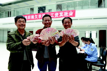 14日,工人们全部领到了血汗钱。 本报通讯员 于德忠 摄