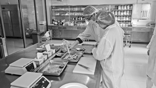 新和盛食品集团新产品开发部,研发人员正在研发制作即将推向市场终端的新产品。